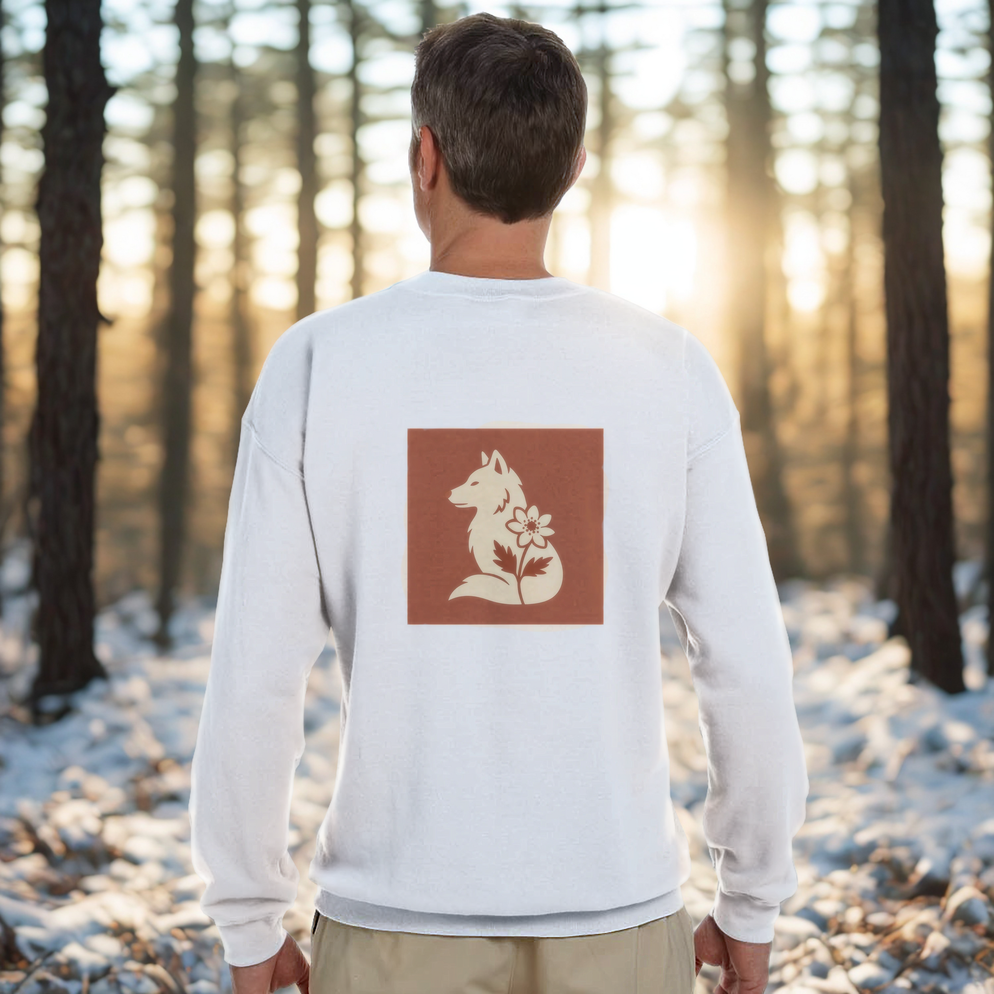 Nordic Wolf & Flower Beige on Brown print - Unisex White Crewneck Sweatshirt